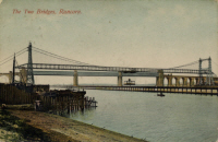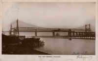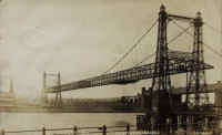 Here is a small video clip (2 mins) viewable in "Windows Media Player" or "Realplayer" of the transporter bridge in operation in the 1950's. The first part shows the moveable platform (or "car" as it was called) docking on the Runcorn side of the river. The sea wall which divides the Manchester Ship Canal from the River Mersey can be seen quite clearly. Then there is a view of a tug on the Manchester Ship Canal itself and finally pictures are taken from the "car" as it approaches the Widnes side.